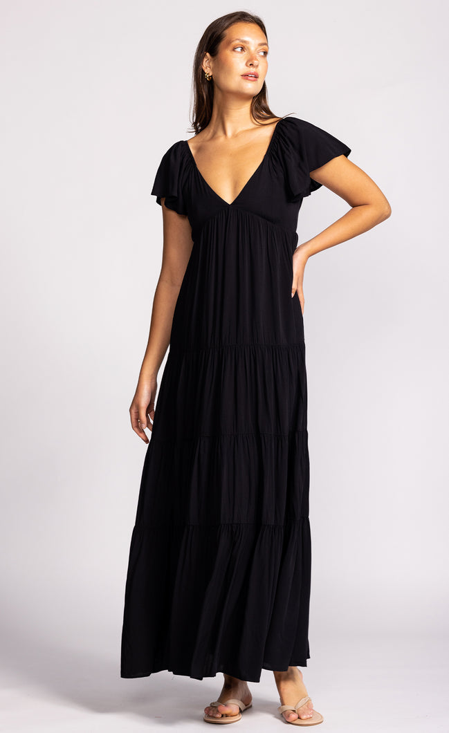 Black short puff sleeve maxi dress