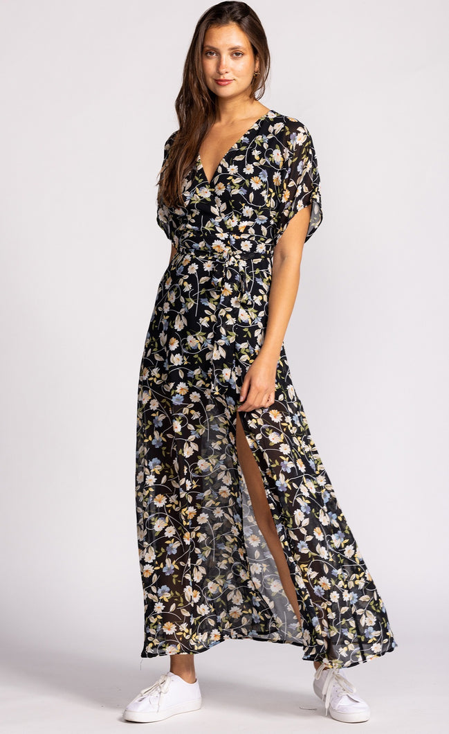 Black white daisy blue maxi dress